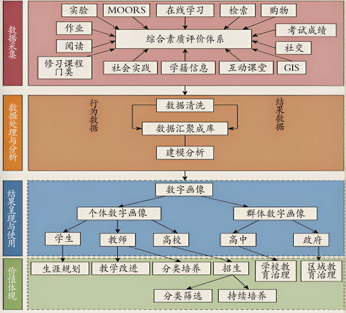 其二,强化数据治理研究,提升综评的实施效率。既要建立基于学生画像的综评应用生态,又要防止出现片面追求“数据之大”,形成数据依赖的潜在风险和“模型绑架”的负面影响,避免让数据“绑架”学生的发展。
