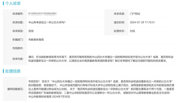 中山有考虑设立一所公办大学吗?
