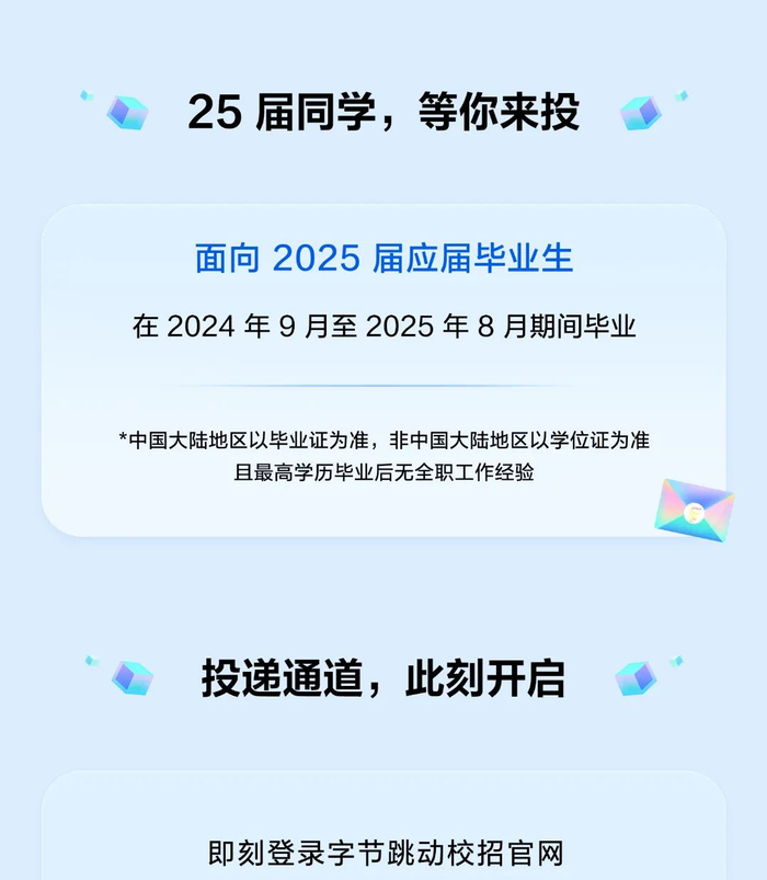 招聘对象:面向2025届应届毕业生(在2024年9月-2025年8月期间毕业)