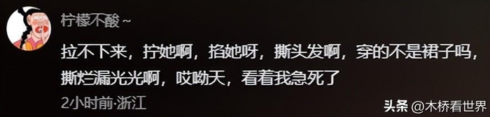 还有网友在评论区里支招:“拉不下来就扯头发啊,穿的不是裙子么撕烂露光光”。