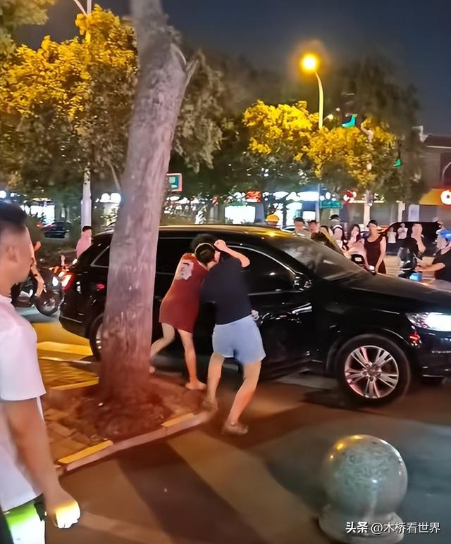 这个时候原配和条纹男子已经不在车旁边了,小三躲在车里不敢出来面对,于是热心民众直接上前将车门给打开了,黑衣服的小姐姐扒着车门,要将小三给拉出来。