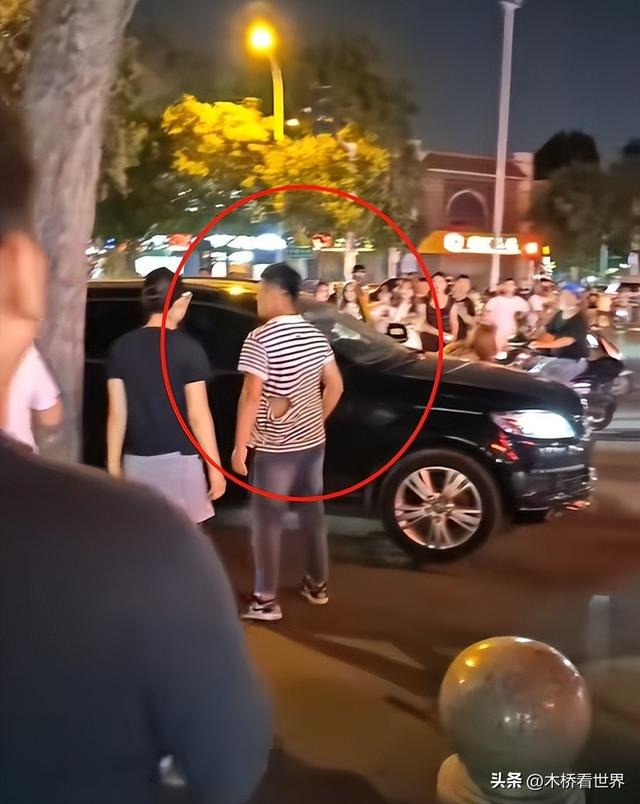 围观的群众越来越多,都堵在车前面不让这对男女离开,并且用手机拍下他们的样子。