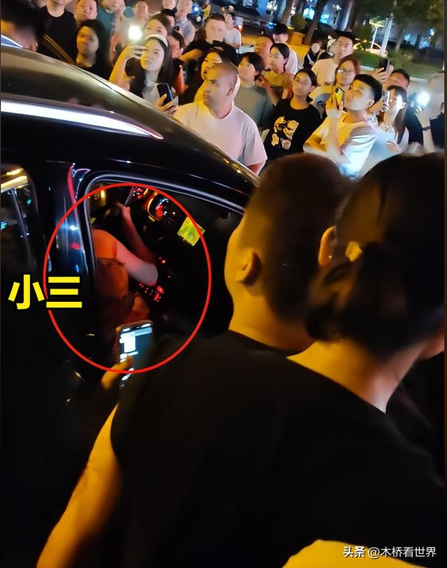民众纷纷围住车辆对着道德败坏的小三破口大骂,并且要将小三给拉出来,但是最后原配却给拦住了。