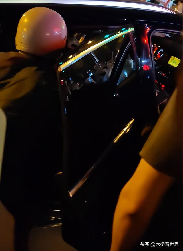 还有个戴粉色头盔的大叔把后车门给打开了,怒斥小三下车,凭什么做在原配买的车里。