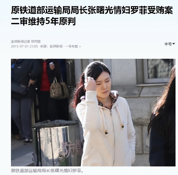 2、澎湃新闻 《原铁道部运输局局长张曙光情妇罗菲受贿案二审维持5年原判》