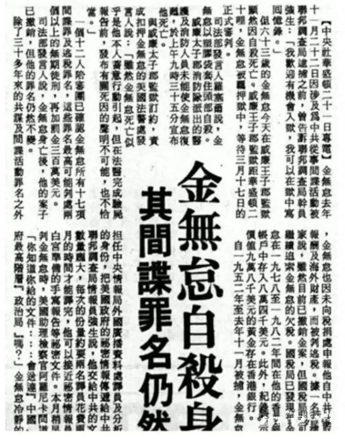 不仅如此,由于那时台湾和美国走得很近,所以金无怠也获得了大量和台湾相关的情报。