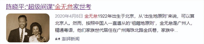 1、陈晓平:“超级间谍”金无怠家世考——澎湃新闻2020-04-08 13:46