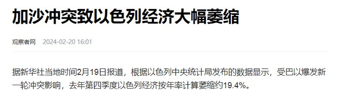1、观察者网 《加沙冲突致以色列经济大幅萎缩》