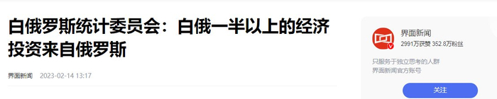 2、界面新闻 《白俄罗斯统计委员会:白俄一半以上的经济投资来自俄罗斯》