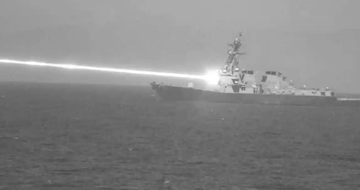 2022年,美军“普雷布尔”号驱逐舰也安装了“高能激光与集成光学眩目监视系统”(HELIOS)系统进行测试,额定功率60千瓦,依然以小型无人机和快艇为主要目标,不过相比起LaWS,增加的光学眩目能力可以专门干扰敌方光电设备,影响其探测能力,算是拓展了软杀伤能力。今年2月,“普雷布尔”号再次进行了测试,虽然功率依然不足,但HELIOS是第一种与“宙斯盾”系统整合的激光武器系统,实战化程度有了大幅提升,当然如何提高功率依然是大问题。