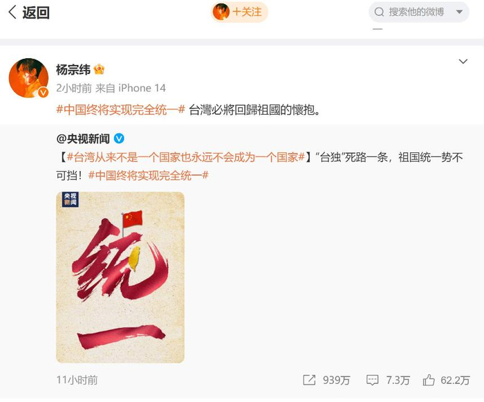 许多网友表示,他们在看到明星转发时感到振奋,也有人对台当局的言论保持高度关注。