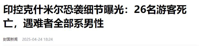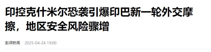 2025年4月22日,印控克什米尔的帕哈尔加姆地区突然响起激烈枪声,一伙武装人员发动袭击,造成了多人死伤。