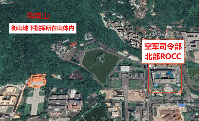 海报上最北部的目标实际上是台军的战略指挥中枢:衡山地下指挥所,以及空军司令部和空军北部区域作战管制中心(ROCC)的所在地。