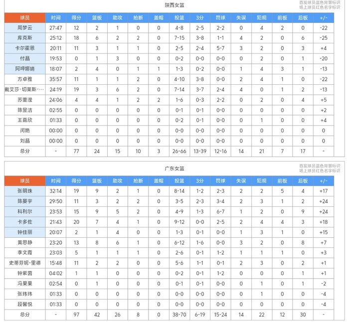 上半场广东队卡多佐得到16+7+2,张明珠10+4,科利尔11+9+4,陈晏宇6+3!下半场第三节易边再战,史蒂芬妮终于开始得分,她确实有能力,外线三分也进了,单节独得7分,张明珠和陈晏宇等人也是轻松发挥,广东队彻底拉开了比分,三节战罢,她们76-60领先,胜利在望了,末节陕西队没有能力改变局面,最终广东队顺利的拿下了比赛!