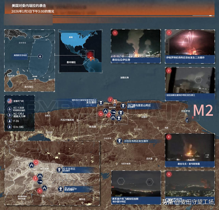此外,美军在空袭之前,已经对委内瑞拉的重要战略基地,包括雷达天线以及区域内的广播天线,都进行了破坏,这使得委内瑞拉可能的战情宣告手段几乎陷于瘫痪。