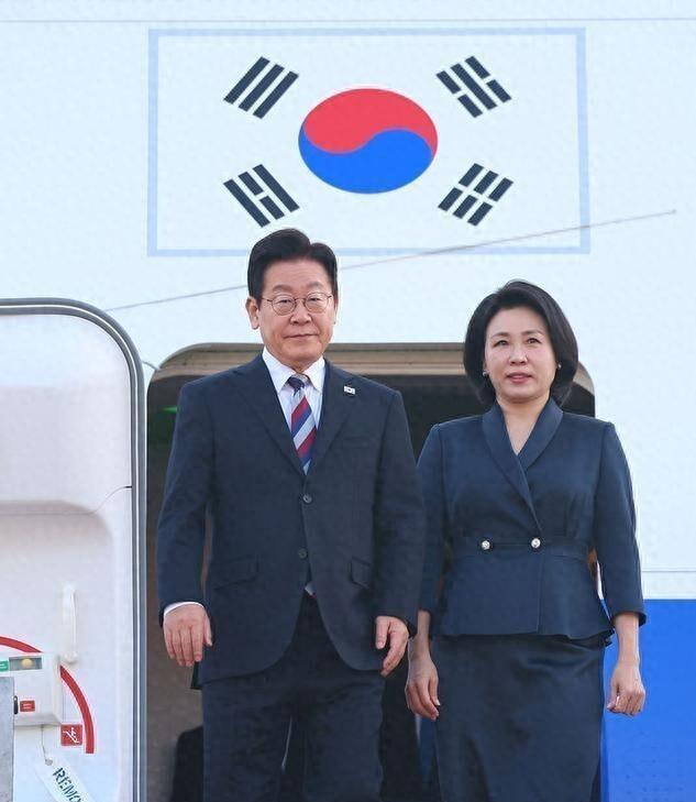 2026年1月4日上午,北京气温零下6摄氏度。 飞机舱门打开,韩国总统李在明穿着标准的黑色中长款大衣、系着酒红色领带走出来。 紧跟在他身后的夫人金惠景,瞬间夺走了所有目光。