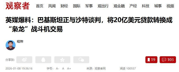据观察者网消息,1月7日路透社援引两名巴基斯坦消息人士的话称,沙特与巴基斯坦之间正在讨论一项交易——“采购‘枭龙’战机”。