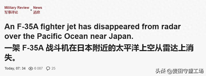 俄罗斯媒体最先发布了F-35突发失联的消息(俄媒《军事评论》报道截图)