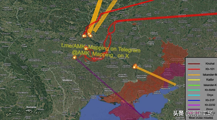 由于乌克兰军队最新补充了一大批“爱国者”防空导弹,德国,法国,英国送去的各种防空导弹,乌克兰军队在20日的防空战中,大量消耗北约送去的防空导弹,按照乌克兰空军的说法,“乌克兰防空部队拦截了11枚伊斯坎德尔-M战术弹道导弹和7枚Kh-101巡航导弹。”也正是乌克兰军队无限度发射北约送去的爱国者等防空导弹,暴露了北约防空导弹弹药库,导致俄军可以快速锁定乌克兰境内北约的弹药库存放地:文尼察州文尼察市东南部,俄军下血本发射了2枚天价的,一枚就1000万美元的“锆石”高超音速巡航导弹进行打击。