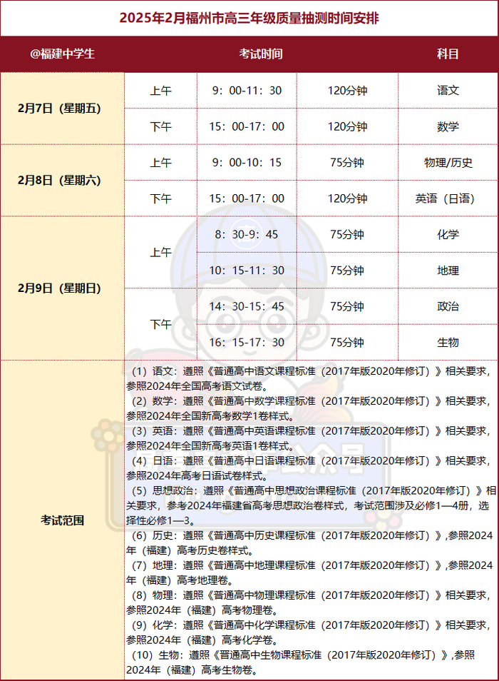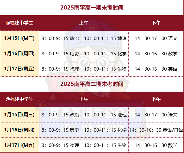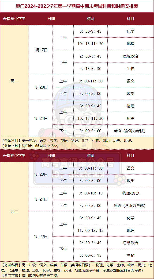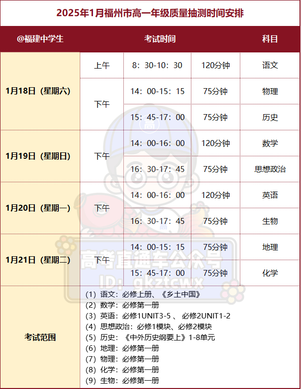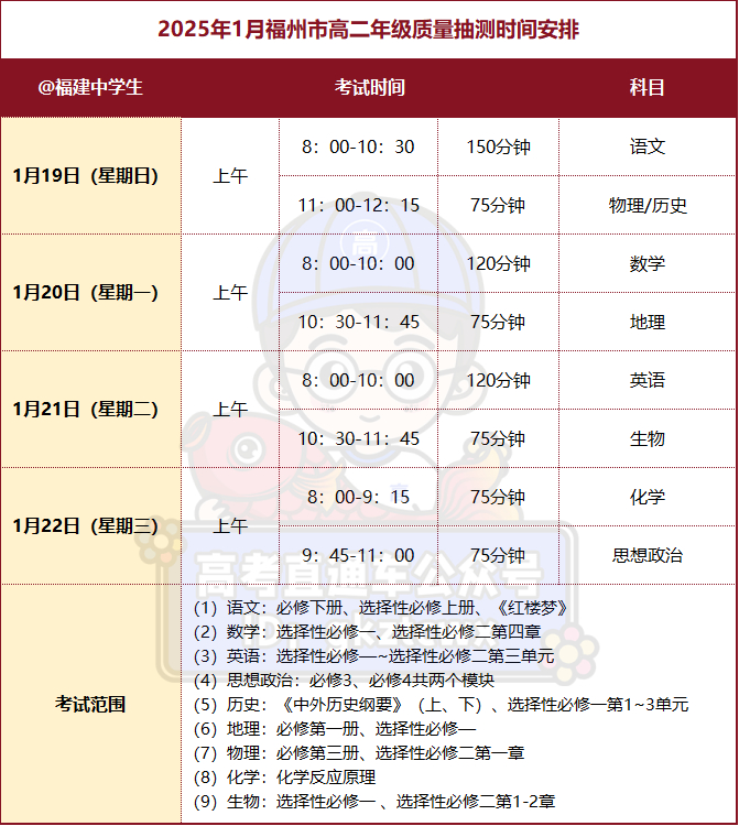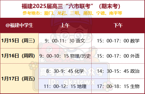 福州市虽未官宣,但根据过往两年(2023届、2024届)的经验,福州市(含平潭)也将加入此次期末联考。福州高三的同学收到老师通知了吗?