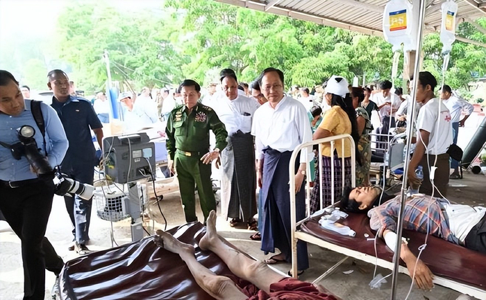 这一举动颇有深意:对内,他需要展现“亲民领袖”形象,缓解民众对军政府救灾不力的不满;对外,则借灾难争取国际同情,为选举承诺争取时间。