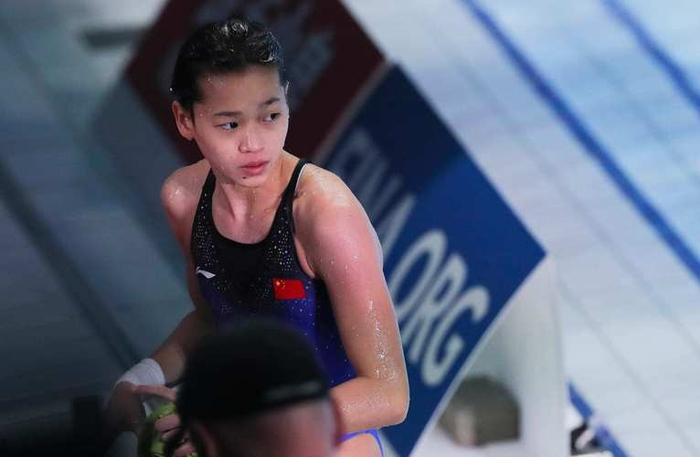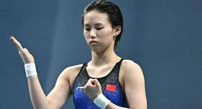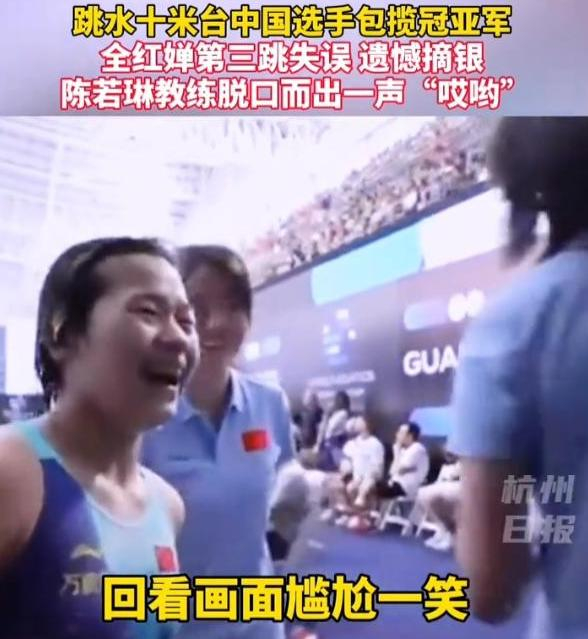 而全红婵自己也感觉到了跳水失误了,在回到等候区的时候,她和其教练陈若琳对视上的时候只能尴尬一笑,因为这个失误她最终以4.95分之差输给了陈芋汐。