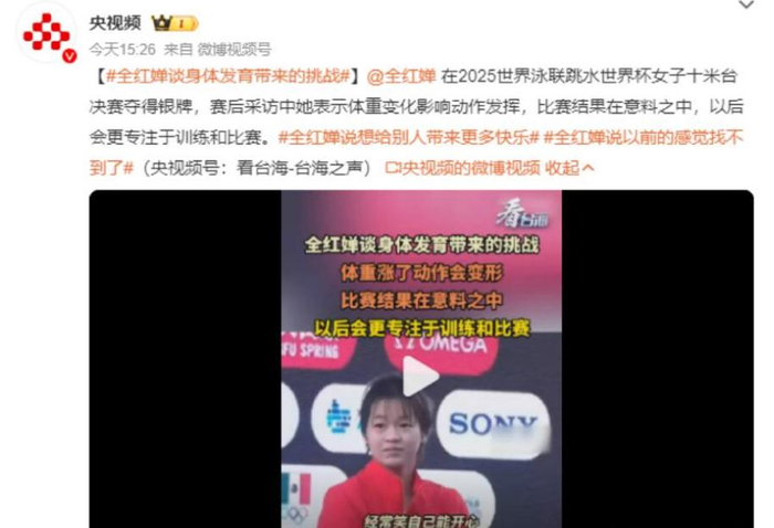 3.中国青年网 体重变化影响发挥?摘银后全红婵回应,这句话让人心疼……2025-04-07
