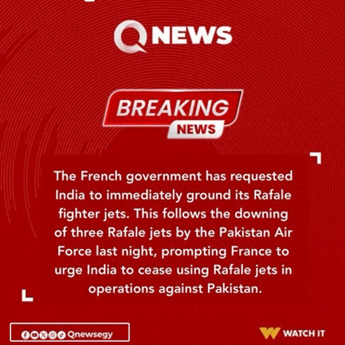不出意外,这个时候社交媒体上又出现了这么一条消息,声称由于3架“阵风”战机在空战中被击落,法国政府对印度败坏自家战机名声的行为急眼了,要求印方立刻在针对巴基斯坦的军事行动中停飞所有“阵风”战机,免得以后法国的战机卖不出去。
