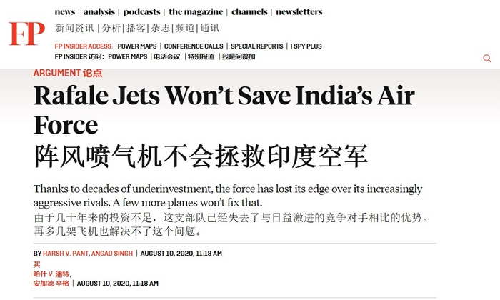 然而,印媒这番推锅甩责并不能掩盖印度空军的失败。早在2020年美国《外交政策》杂志就曾指出,“阵风”拯救不了印度空军,“由于几十年来的投资和建设不足,印度空军已经失去了与竞争对手相比的优势,再多几架飞机也解决不了这个问题。”