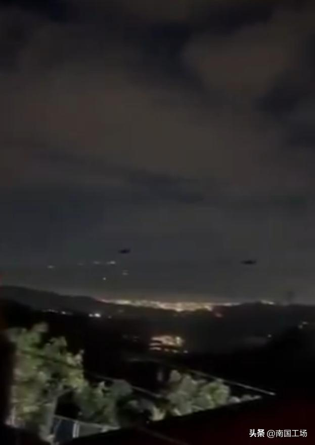 委内瑞拉当地人拍摄的,美军黑鹰直升机,小鸟直升机,搭载美军特种兵,突入委内瑞拉上空