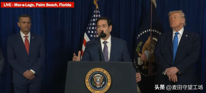 相比之下,被视为"下一届总统大选潜在竞争者"的国务卿鲁比奥表现更为微妙。他居然是脱稿发言,语气倒是十分克制,甚至跟对特朗普开起了冷玩笑,却难掩实际上的生硬。