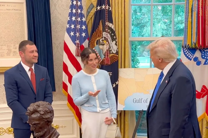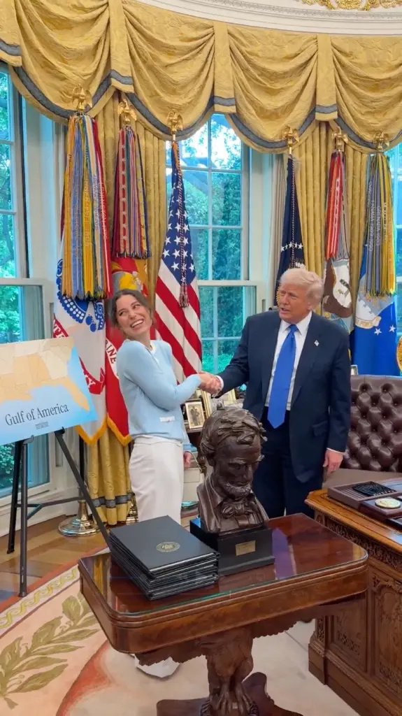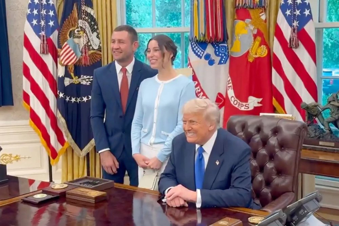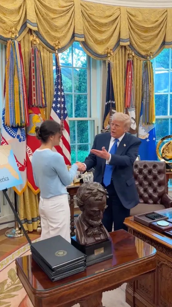 “恭喜你呀!”78岁的特朗普在椭圆形办公室与卡雷利娜握手时说道。这次会面并未对白宫记者开放,不过通讯顾问玛戈·马丁录制了相关画面,并在社交平台X上发布了一段14秒的剪辑视频。