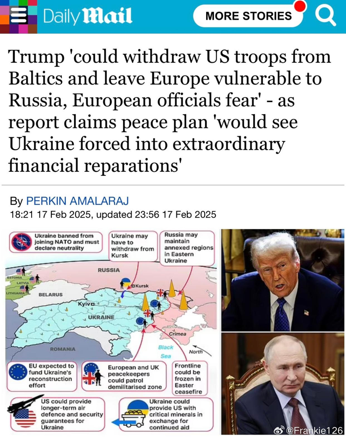 特朗普与俄罗斯总统普京的电话会谈后,媒体纷纷猜测,美国可能愿意承认俄罗斯对乌克兰部分领土的控制权,并通过撤军波罗的海三国来换取俄乌停战。这意味着,立陶宛、拉脱维亚和爱沙尼亚三国将失去最重要的安全保障,而北约在东欧的防御体系也将遭遇重创。欧洲各国对这一可能性深感忧虑,因为美国的撤离将使俄罗斯在东欧的军事压力倍增。