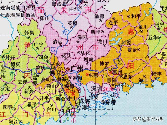如果大家了解广东省的区划,就不难发现问题。其中,广州府下辖的14个县,基本上都是当代珠三角地区的主体部分。1840年以后,西方列强对清朝发动了一系列的战争,例如鸦片战争等等。清朝一败再败,不得不签署了大量的条约,开放了众多的通商口岸。广东省的地理位置非常重要,商业价值巨大,各国列强在广东省各地,展开了疯狂争夺。