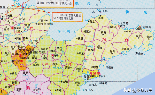 烟台地区原本下辖的威海县级市、荣成县、文登县、乳山县、牟平县、海阳县、莱阳县、栖霞县、招远县、黄县、蓬莱县、掖县、长岛县等13个县、县级市,划入了烟台地级市管理,合计有15个区县。同时,烟台地区下辖的莱西县,划入了青岛市管理。