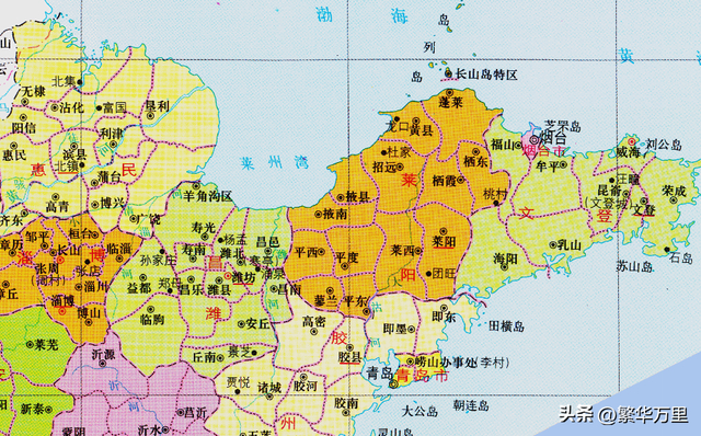 众所周知,我国行省区划出现于元朝,历经元明清三朝的不断调整和完善,在清朝统治的中期,基本上形成了各省的大体区划格局。截至清朝嘉庆皇帝在位时期,山东省总计下辖了10个府,分别是:济南府、兖州府、东昌府、青州府、登州府、莱州府、武定府、沂州府、泰安府、曹州府。在清朝统治时期,烟台市下辖的各个区县,基本上隶属于登州府、莱州府管理。