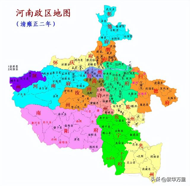 截至清朝嘉庆皇帝在位时期,河南省形成了9个府、4个直隶州的区划格局。分别是:开封府、河南府、彰德府、怀庆府、卫辉府、归德府、南阳府、汝宁府、陈州府、许州、陕州、汝州、光州。其中,郑州市下辖的各个县,基本上隶属于开封府管理。