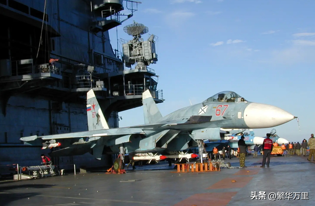 无论是海鹞、F35B,还是米格29K、苏33、歼15,都会面临类似的问题。以俄罗斯的苏33战机为例,在陆地机场起飞,作战半径1500公里,最大挂载能力6.5吨。但是,由于采用了滑跃起飞模式,战机无法满油满弹。按照计算,苏33战机在航母上滑跃起飞,如果确保拥有1000公里作战半径的油量,最多只能挂载4.4吨弹药和武器。