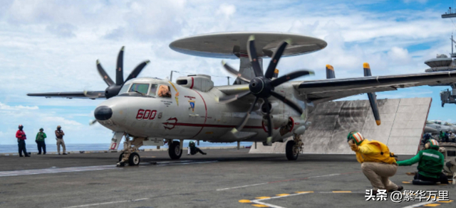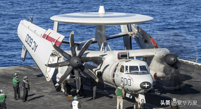 接下来,我们聊聊舰载预警机。众所周知,预警机承担了探测、预警、分析、指挥的职能,属于整个编队的大脑和眼睛。当然,在海军航母编队中,舰载预警机,主要承担了探测、预警的功能,属于整个航母编队的“眼睛”。截至目前,只有美国发展了舰载固定翼预警机,也就是赫赫有名的E-2系列预警机。美国海军的每艘航母上,大约搭载4—5架E-2系列预警机。
