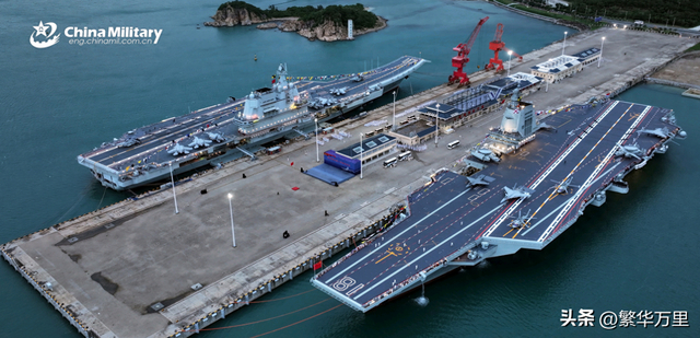 按照水线宽度反推,四号舰的甲板长度、宽度,以及整体框架,比福特级航母,大了半圈。满载排水量可能接近或者达到12万吨,各个方面的配置,明显优于美国的福特级。当然,从各方面的卫星航拍图分析,四号舰的框架布局、舱室设计,与美国的福特级航母设计,大同小异,很多方面比较接近。所以说,如果中国、美国的航母,同一年服役,看谁尴尬?