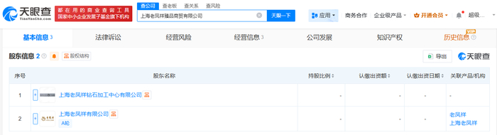 雷达财经讯,天眼查App显示,近日,上海老凤祥臻品商贸有限公司成立,法定代表人为李军,注册资本5000万人民币,经营范围包括珠宝首饰批发、金银制品销售、国内贸易代理等,由上海老凤祥钻石加工中心有限公司、上海老凤祥有限公司共同持股。