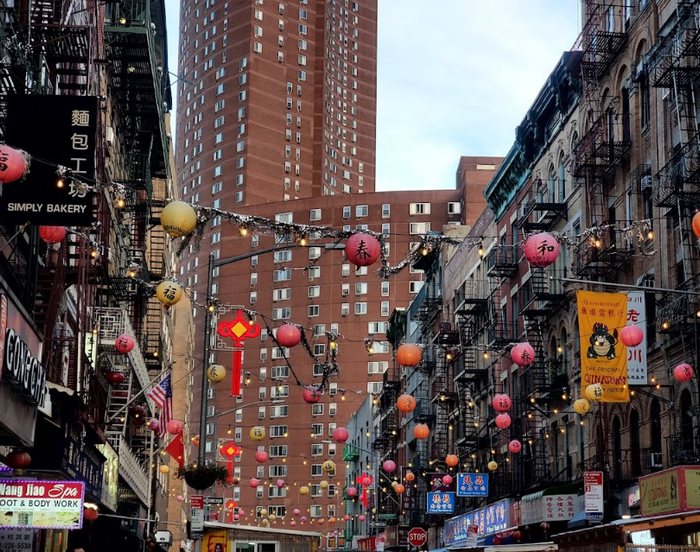 另外,谷歌地图街景图片显示,运河街街道两旁有不少华人商店招牌,街道空中还挂着各色中式灯笼,是典型的华人商业区。