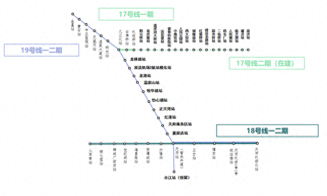 既有线成都地铁17号线一期进行拆分后,原17号线金星站至九江北站区段将纳入19号线运营,九江北站变为17、19号线的换乘站。