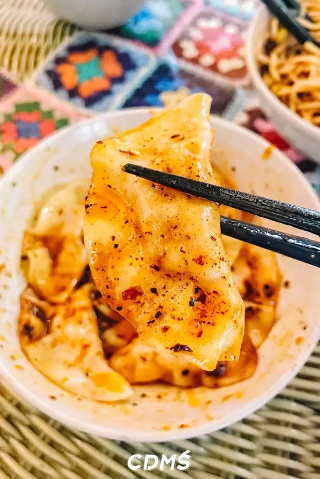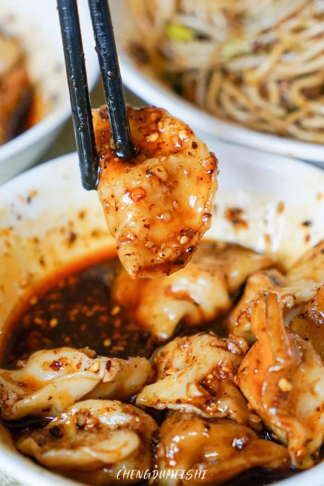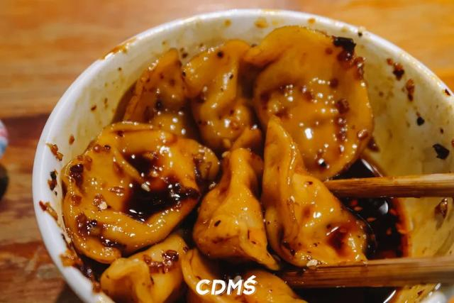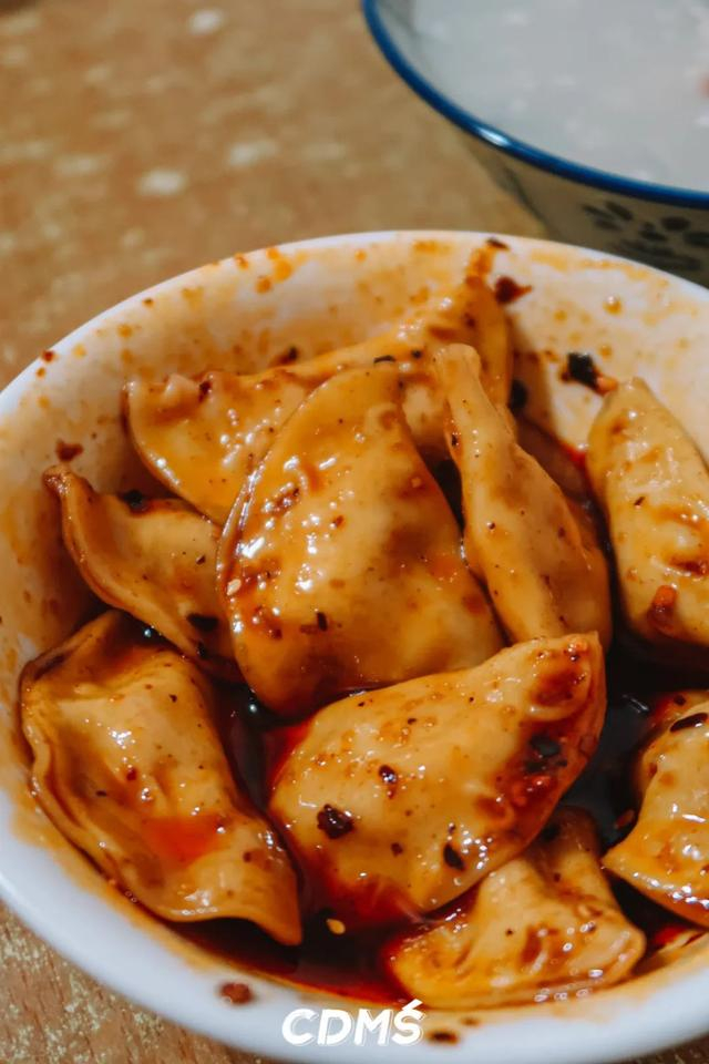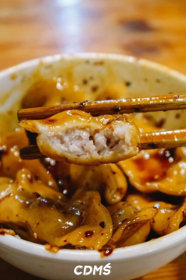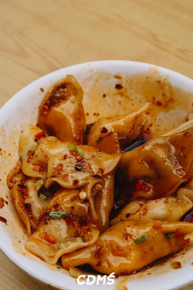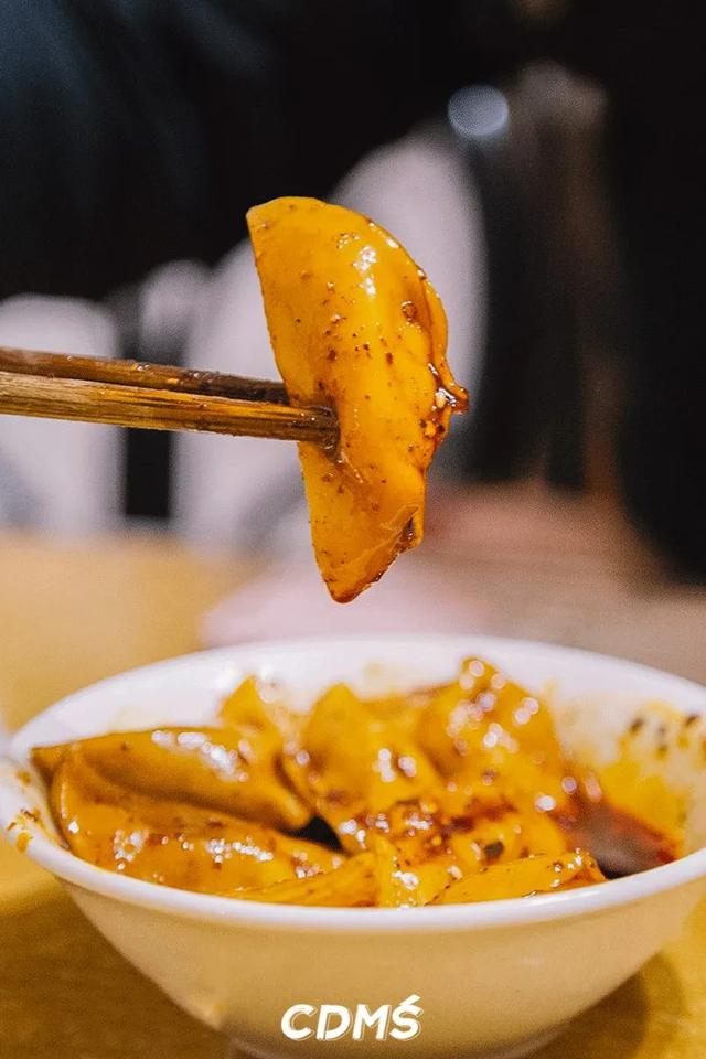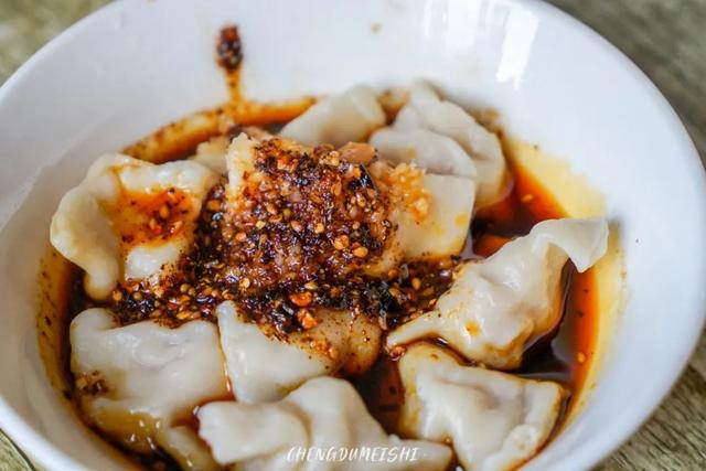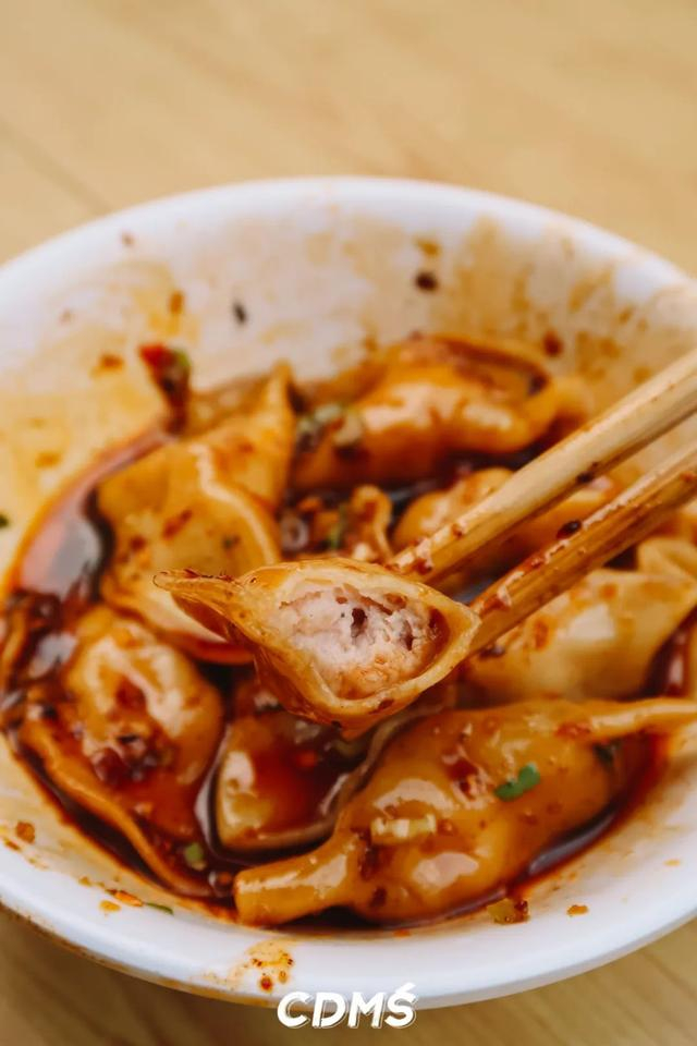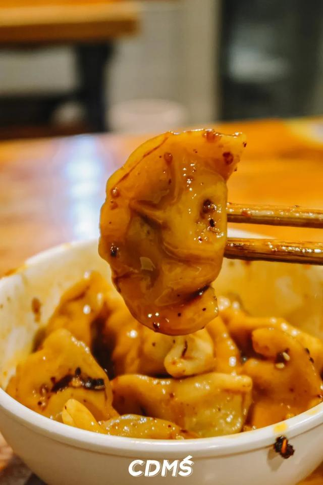 红油水饺是老成都标配的甜辣口,纯肉馅QQ弹弹的没得一丝冰箱味,圆嘟嘟的还有点小可爱。喜欢咬个一半再蘸料吃,够味过瘾~