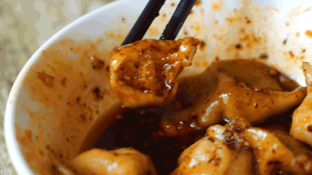 怪味水饺是酸辣味的,蒜泥较多,照旧是圆嘟嘟的小饺子,比红油水饺来的更清爽一些。