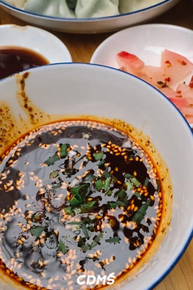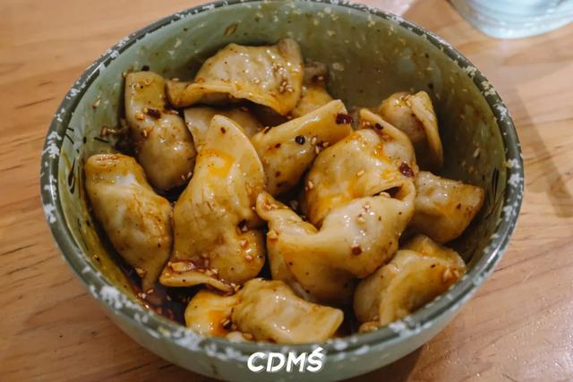 饺子皮是老面发的,十分有嚼劲,蘸料是四川版的红油蘸碟,东北饺子和四川口味的结合,整体风味也蛮匹配。