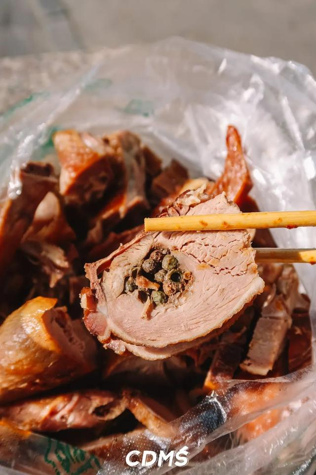 光鸭子口味就有4种,卤鸭、香酥鸭、甜皮鸭、烟熏鸭。烟熏鸭,先卤后烟熏,里面加了很多花椒,吃起来带着点麻,还蛮不错的。