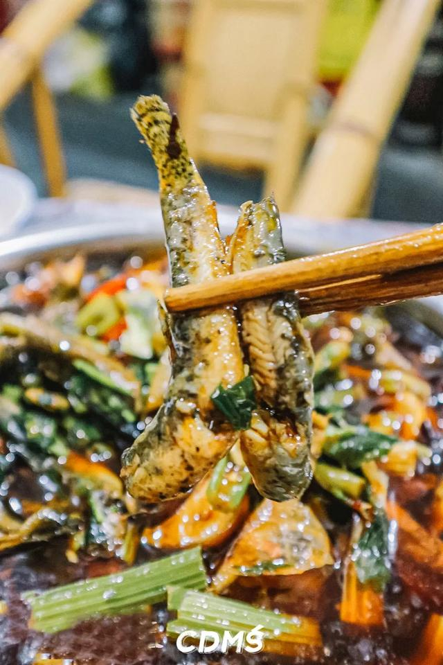 他们家黄鳝泥鳅分开做,最后是huo到一起,上面撒了一把新鲜的藿香,一下就解了油腻。切断的鳝鱼,比通常的要小,吃起来更加入味,肉质很紧实,嚼起来带着微微的弹牙。一抿就化的泥鳅肉,嫩到刺都可以嚼来吃了。麻辣味完全融入到里面,很好吃。