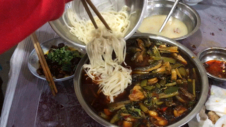 吃了一半,剩下的一定要留到下面吃,这也是一道菜的最高荣誉!不用打包回家整,直接就可以喊老板煮一碗下进去。