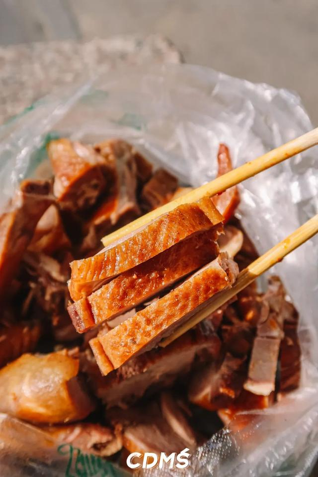 提起他们家,熟悉的人最先想起的就是:卤肥肠!卤味并不重,肥油的香味却相当迷人,和平时吃的一节一节的卤肥肠完全不一样。长条形的肥肠热乎乎的,皮和肉中间还有一层薄薄的白色脂肪,入口软烂,糯糯的。